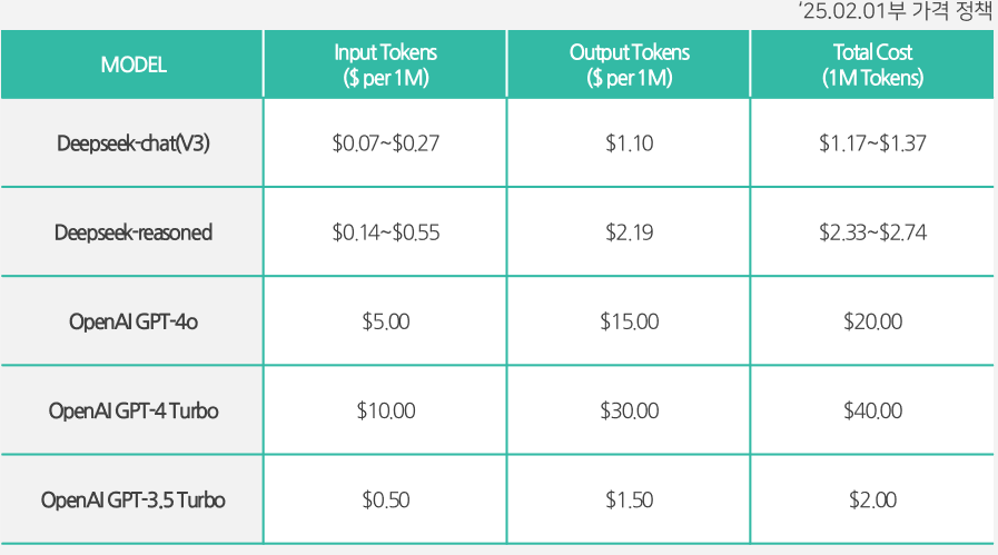 일반 사용자는 챗 GPT 를 자주 이용하지는 않기 때문에 이용료를 지급하면서까지 사용하기는 부담스러울 것이다. 딥시크는 이런 부담을 크게 완화했다. 입력토큰 100 만 개당 0.55달러, 출력토큰 100만 개당 2.19 달러로 이용할 수 있게 하여 일반 이용자들은 천 원도 안되는 저렴한 비용으로 AI 모델(딥시크 R1) 을 사용할 수 있게 됐다.